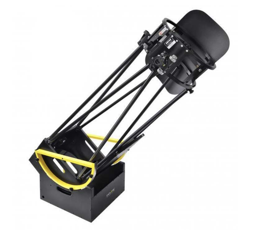 Two typical Dobsonian (Dob) telescopes. Remember Dobs are Newtonian Reflectors on simple integral alt-az mounts. The telescope on the left is a common design for mirror with diameters of 10 inches or less. The design of the telescope on the right will start with mirror sizes of 12-inches and up and over 36 inches in diameter.