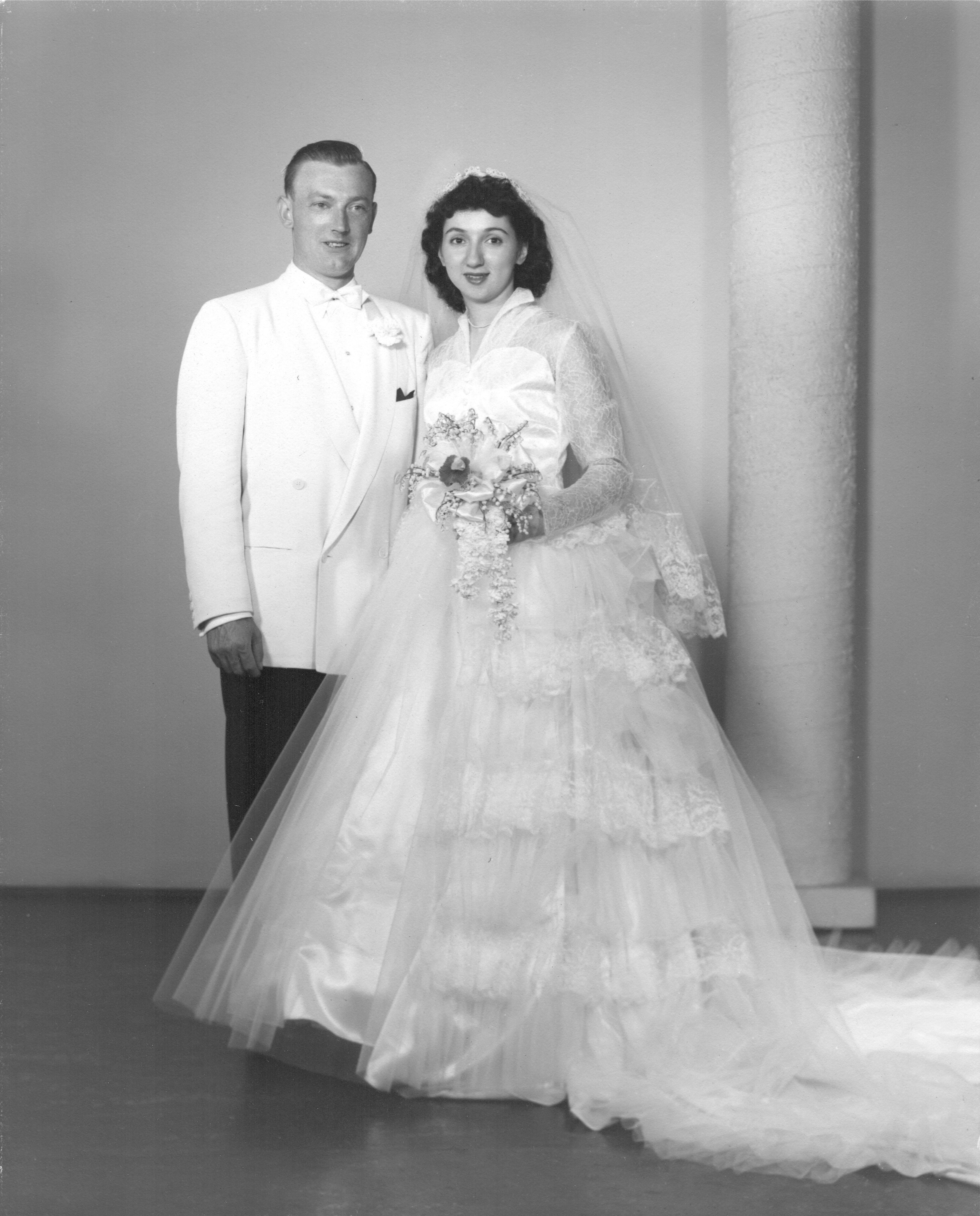Mom had her high school picture and the unknown uncle hidden behind her wedding picture. The high school picture is nice and it could use a little cleaning up in a photo editing program.